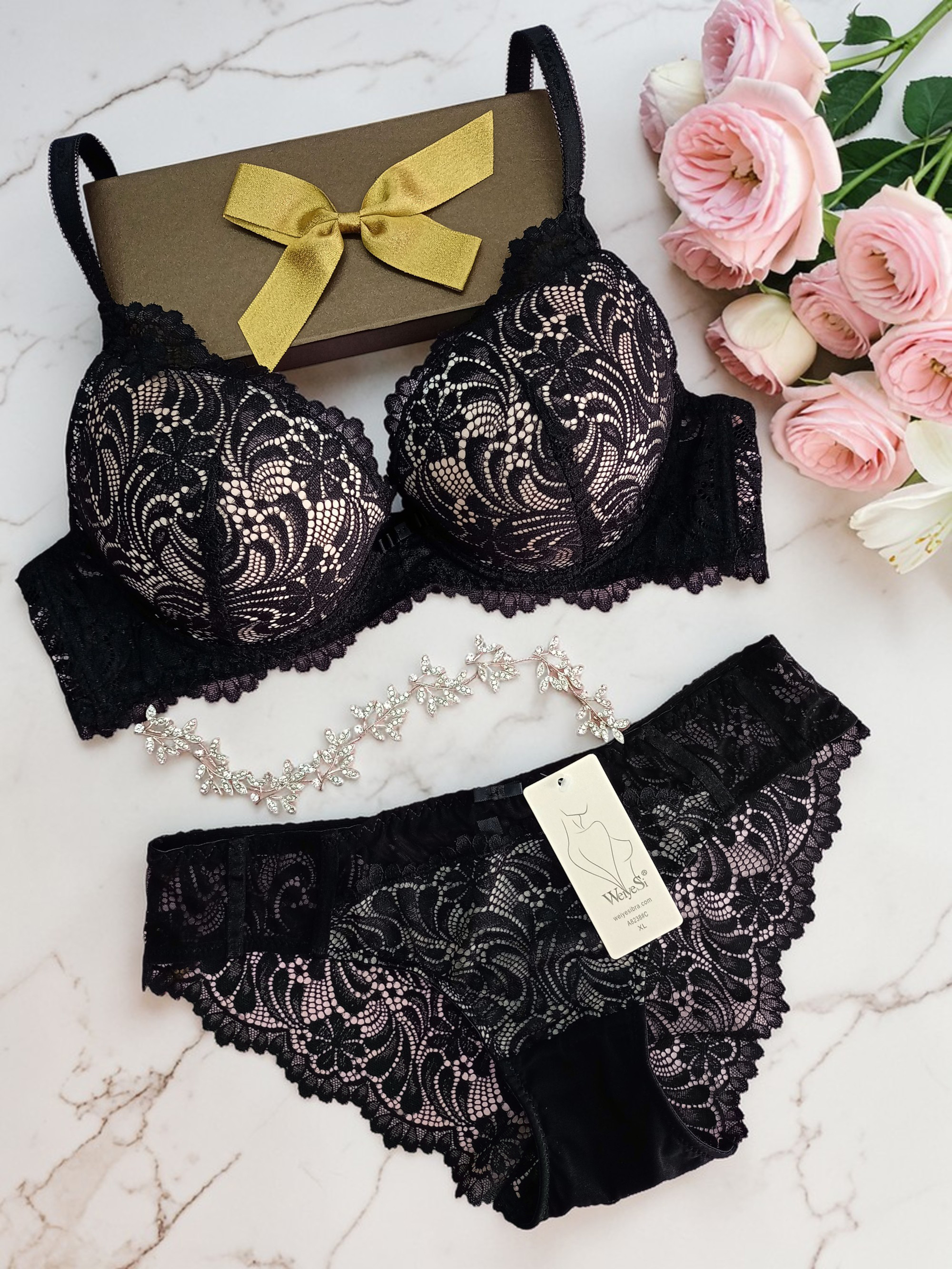 Висота чашки зсередини по центру без урахування кісточки, але з урахуванням мережива зверху 14,5 см. Глубина чашки від кісточки до кісточки (не враховуючи кісточку 16 см) Довжина бюстгальтера до першого замочку 62,5 см, до останнього 66 см., загальна довжина 67 см. Трусики резинка 30 см, бедра 33 см, висота 18,5 см